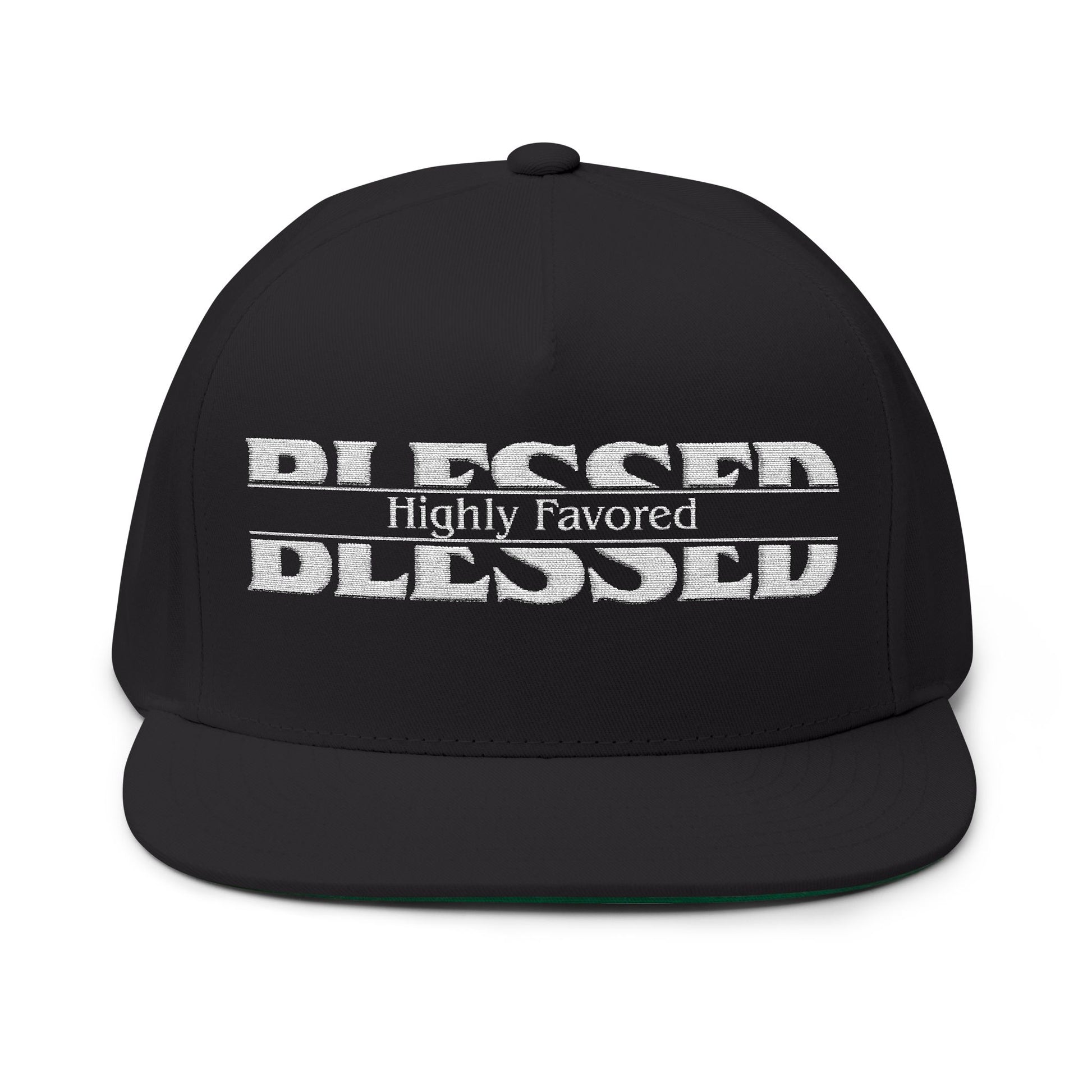 Blessed Flat Bill Cap — 'Highly Favored' Embroidered Snapback