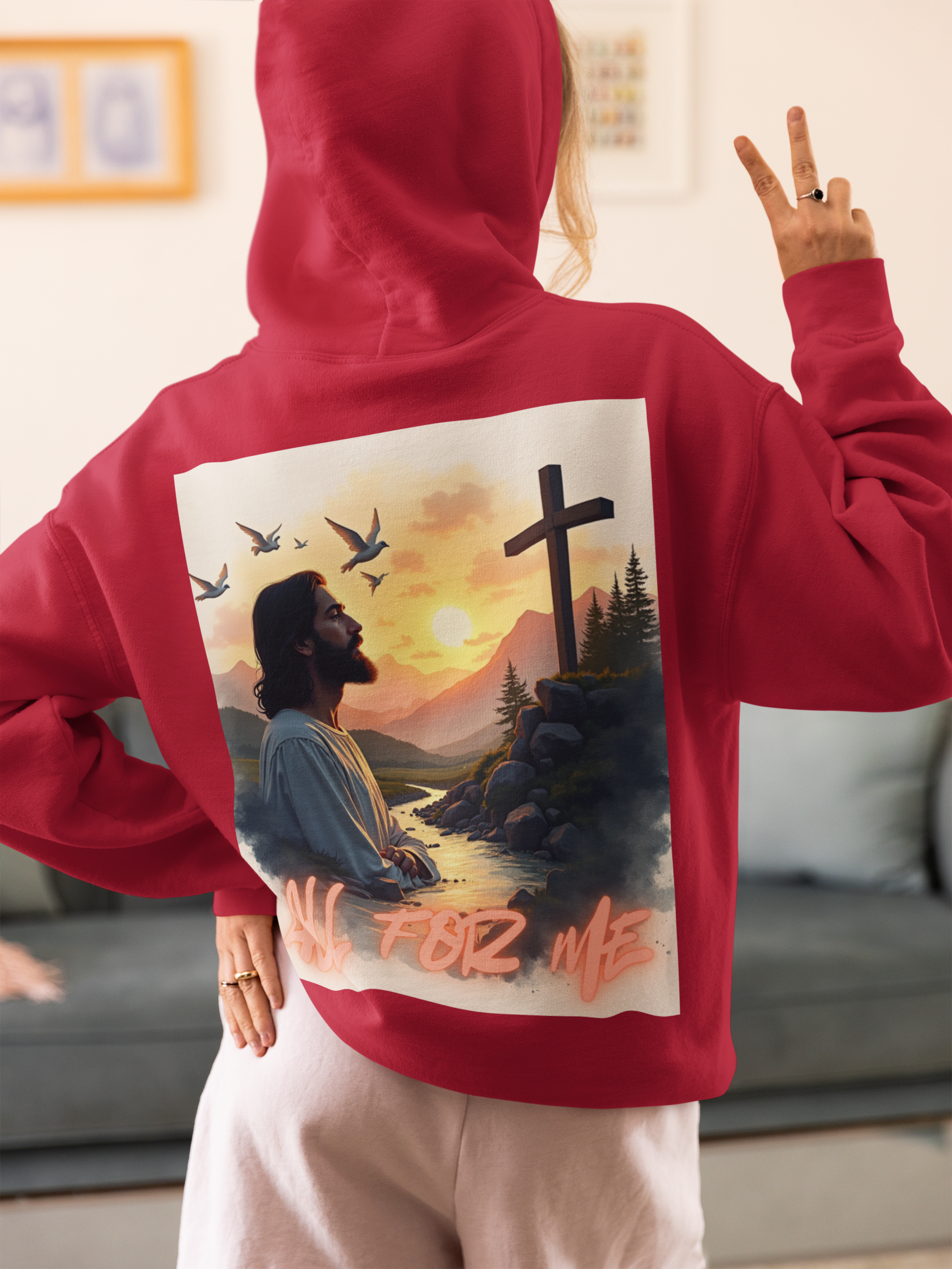 Christian Jesus Cross Hoodie – 'All For Me' Faith Graphic Full-Zip Sweatshirt