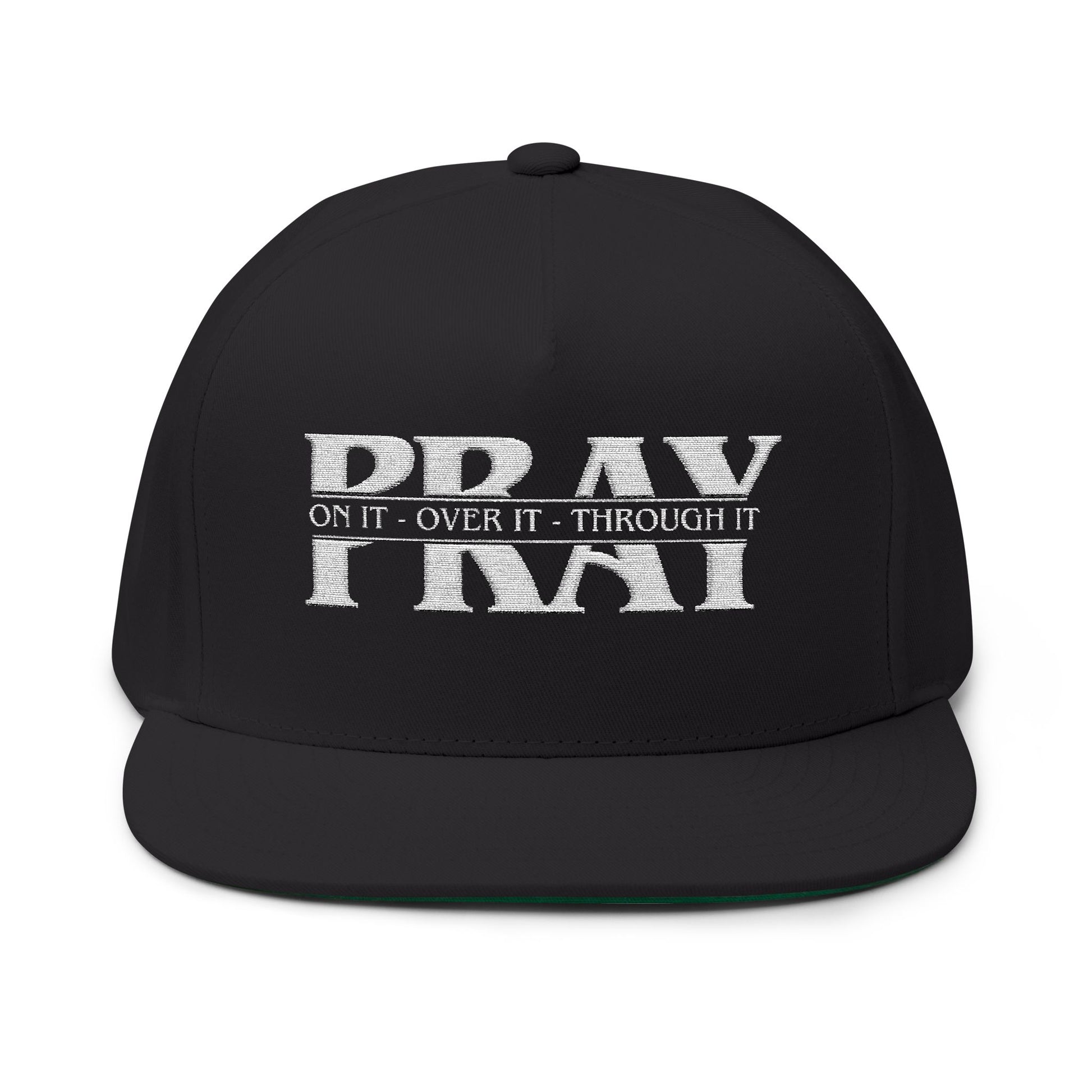 Embroidered Flat Bill Cap — Distressed Block Text Snapback