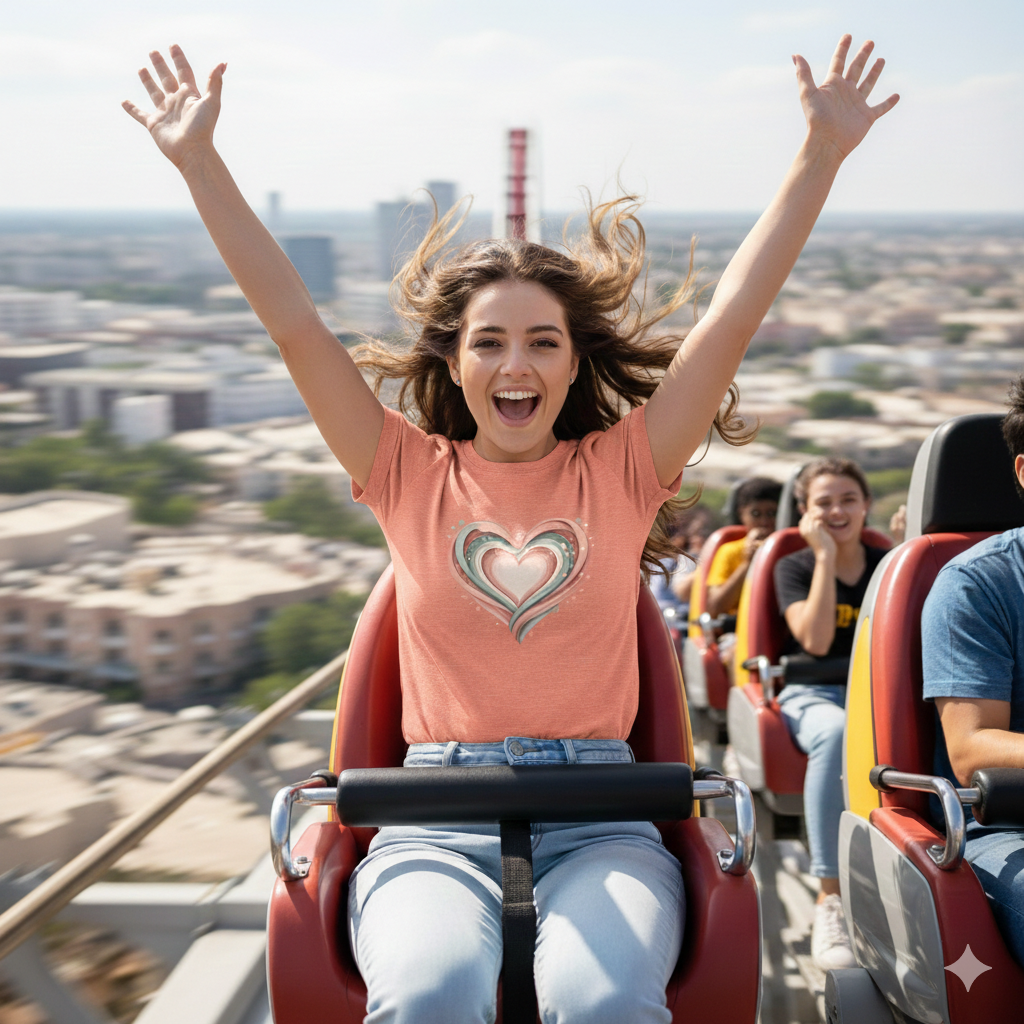 A soft, breathable tee that carries a gentle, hand-painted heart at its center — a quiet statement of warmth and slow joy. The lightweight Airlume combed cotton feels cool against the skin and layers easily under a jacket or pairs simply with jeans. Subtle ribbed collar and side seams keep the silhouette neat after many washes. Thoughtful details like shoulder tape and a tear-away label make it comfortable for everyday wear. The heart graphic’s warm coral and sage strokes read like an intimate sketch, worn by someone who values calm style and honest gestures.