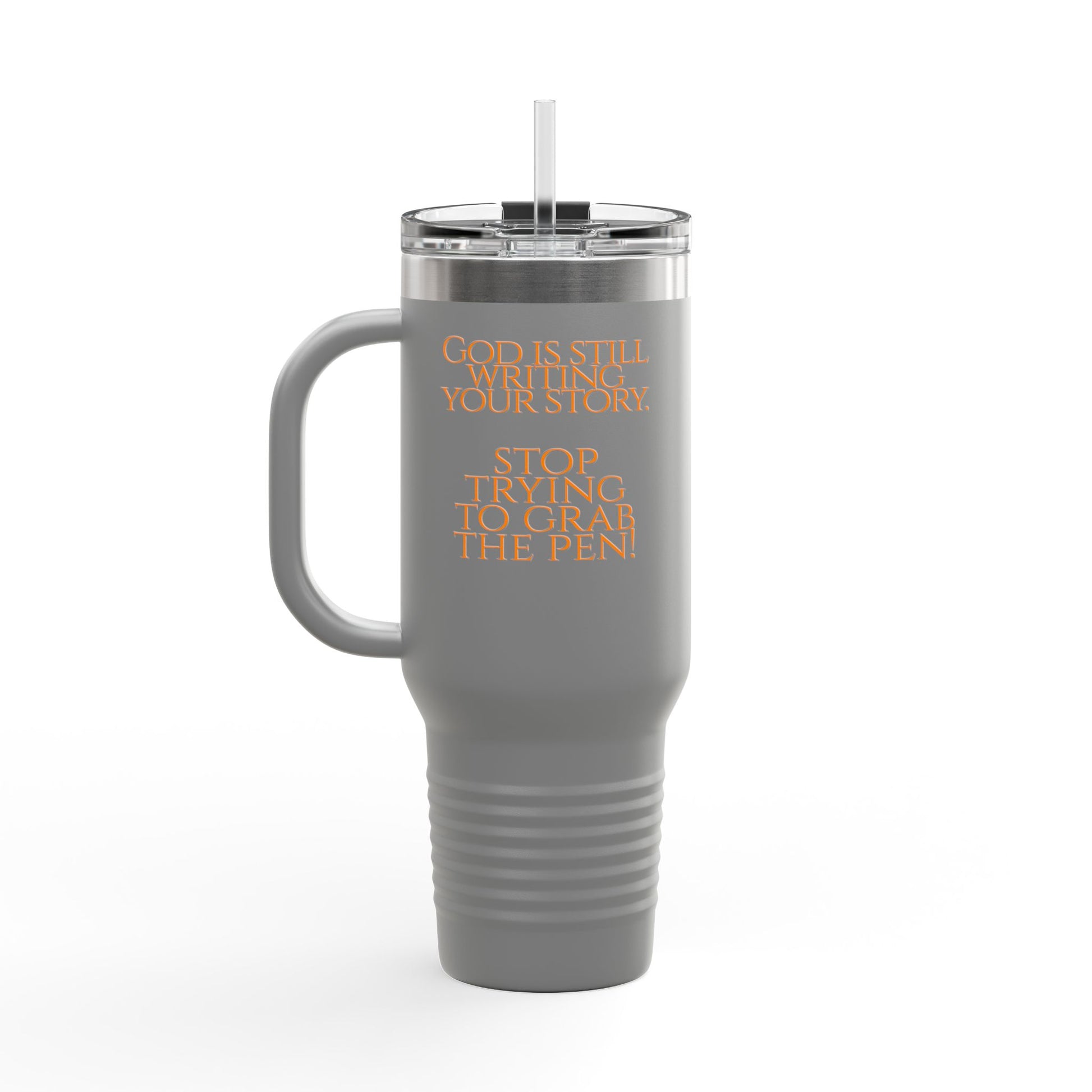 This 40oz insulated travel mug blends dependable performance with everyday comfort. Thick double-wall stainless steel locks in temperatures for hours, whether you need a morning coffee to stay hot through a long commute or an iced drink to last a summer hike. The ergonomic handle and included straw make sipping on the go simple, while the secure leak-proof lid and powder-coated finish stand up to daily use. Subtle printed artwork wraps the mug, giving it personality without shouting. Itβs the kind of tumbler you reach for when you want a reliable companion for road trips, workdays, and outdoor weekends.